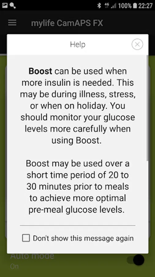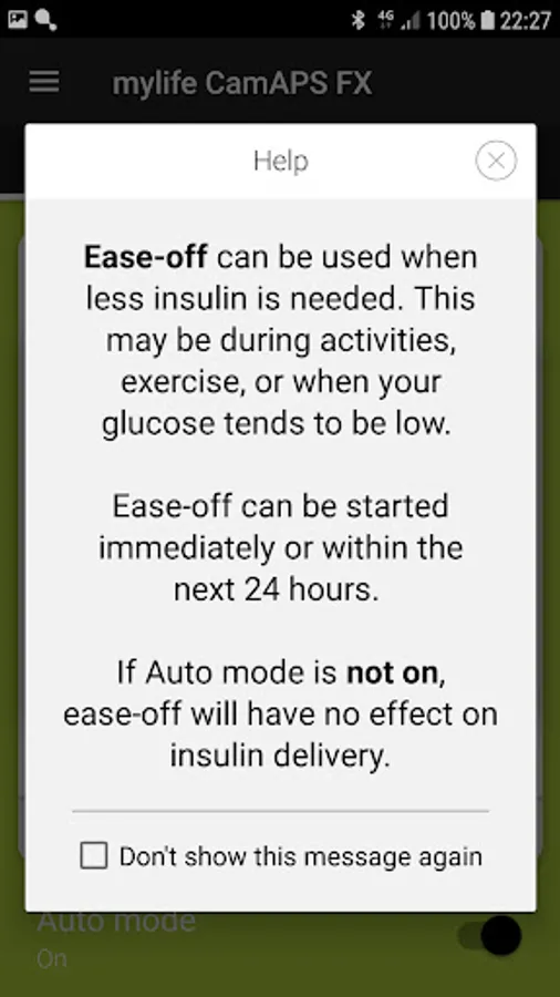 b) The ‘app’ is attempting to enter Auto mode but a condition is preventing it from doing so, for example, when CGM data become unavailable. The ‘attempting’ status continues until the condition preventing the start of Auto mode is resolved. When in ‘attempting’ mode, insulin infusion will revert to the pre-programmed basal rate after approximately 30 minutes.