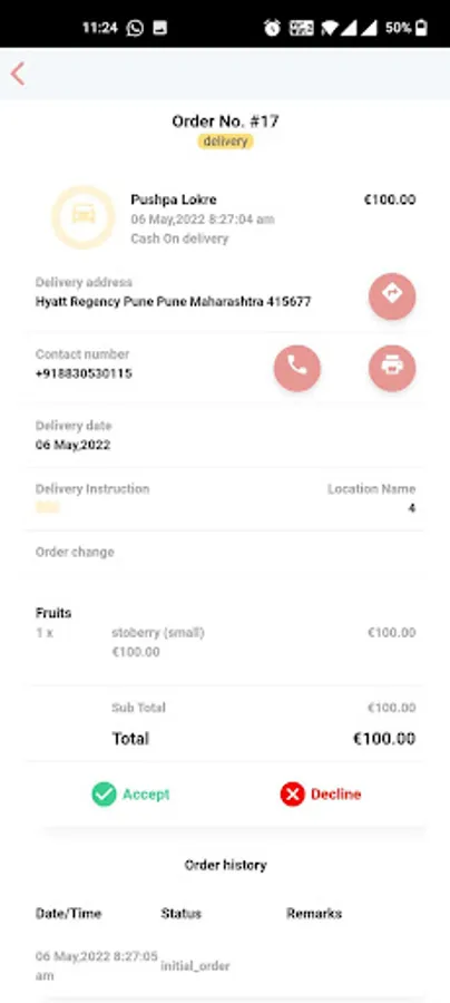Camdrives Vendor is an online order taking application that allows merchant to accept or decline order which are placed by the customers.Merchant follows following steps on receiving an order :