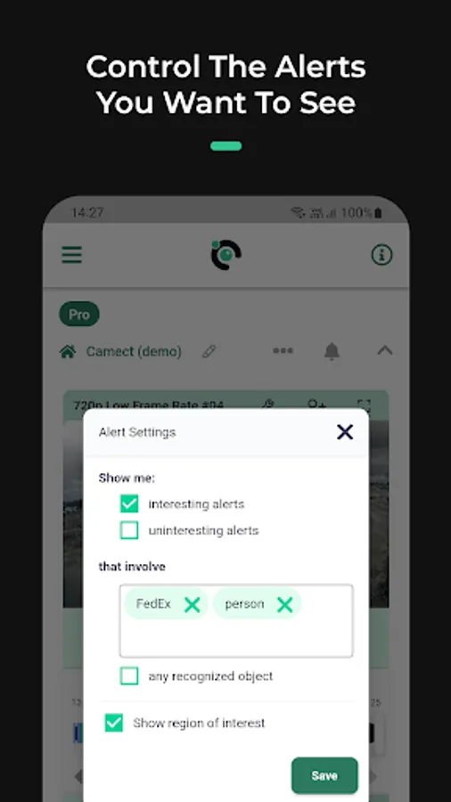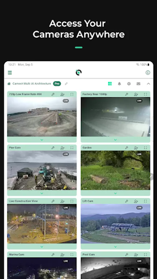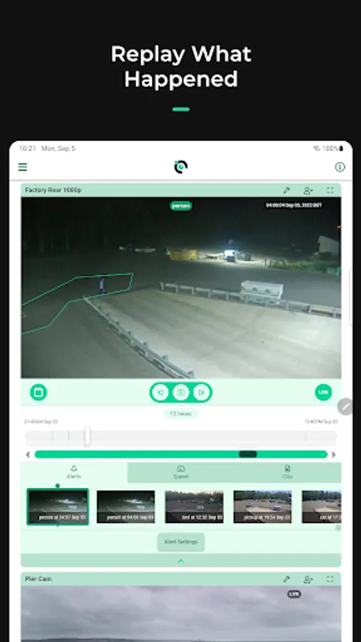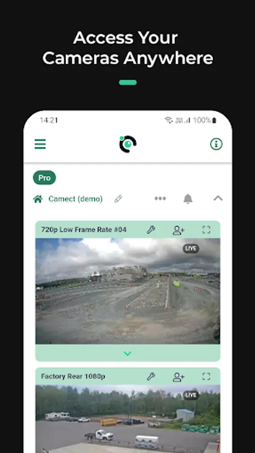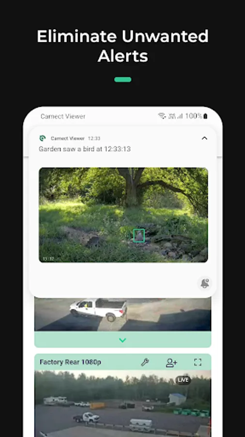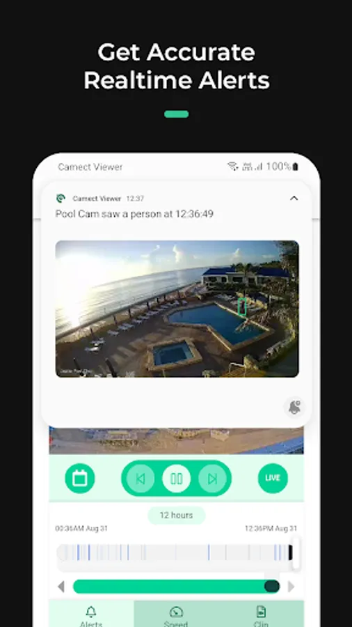 Camect Viewer connects you to the cameras on your Camect smart camera hub. Receive notifications from your cameras when interesting activity occurs, and click through to review the alerts, or to access live or recorded video.