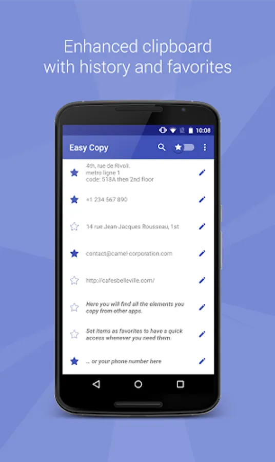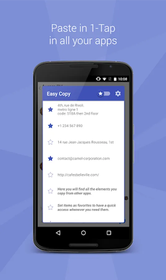 - Now with Easy Copy you just tap on the Paste feature in the notification bar, choose your favorite item ‘address’ and paste it!