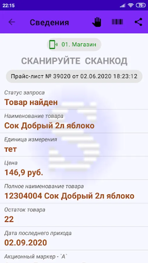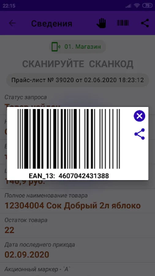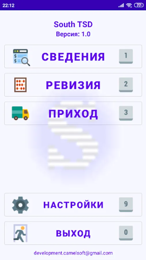 The application is a barcode scanner as an addition to the South software package. The program allows you to quickly receive information about a product, and also collects and organizes data for their subsequent use in revisions, receipts, expenses, orders.