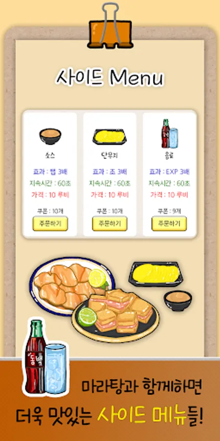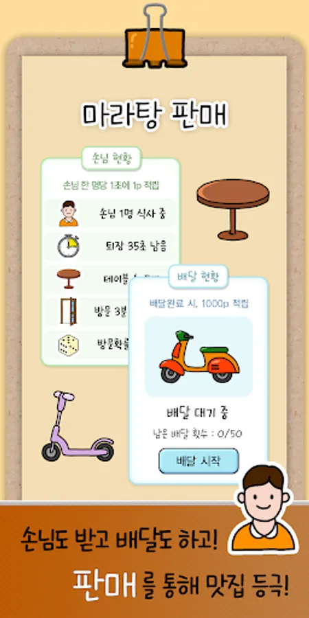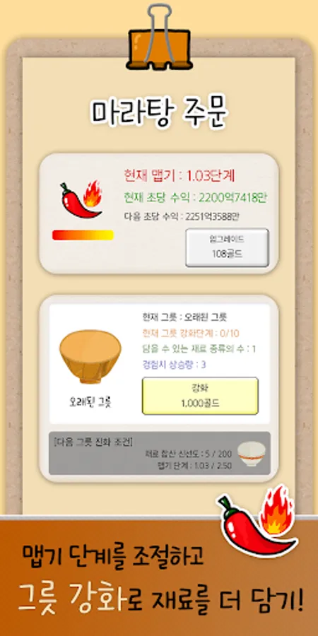🍜 You can earn money per second by upgrading the level of spiciness.