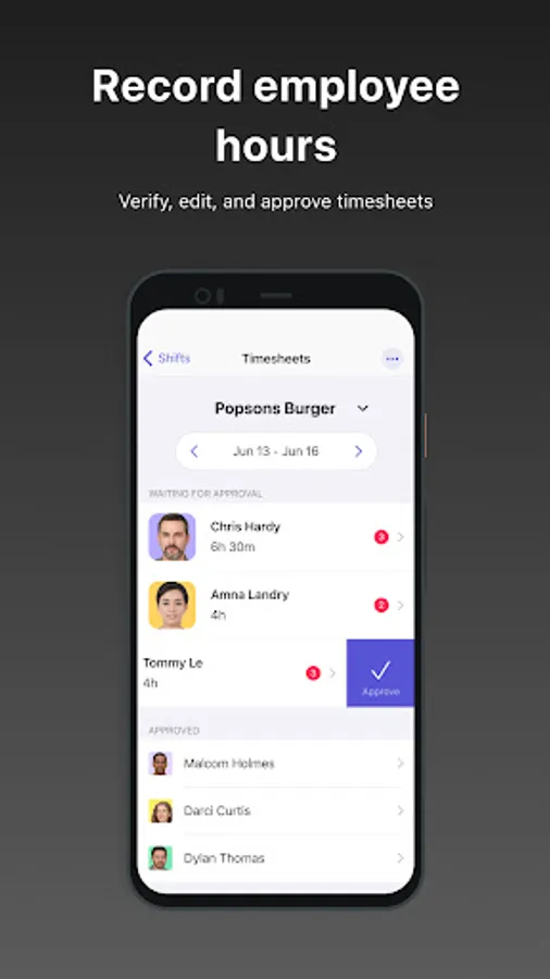 - Record, approve, and export timesheets for accurate payroll