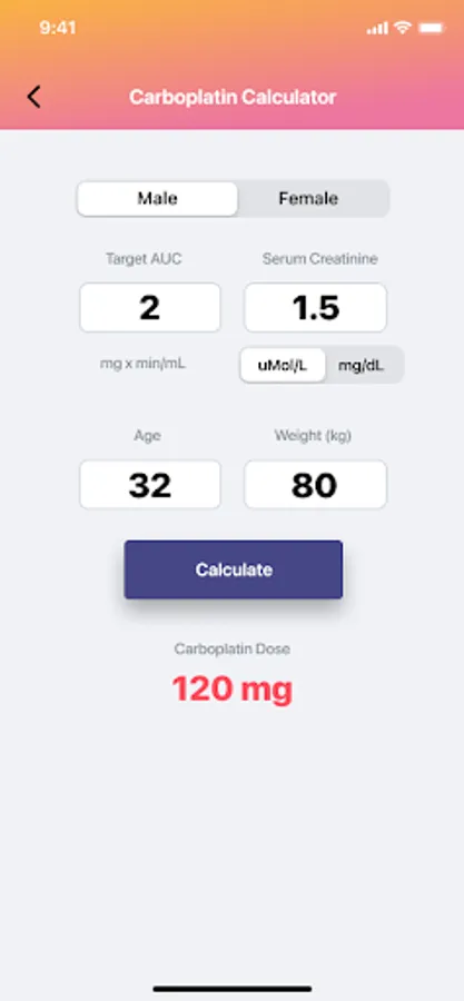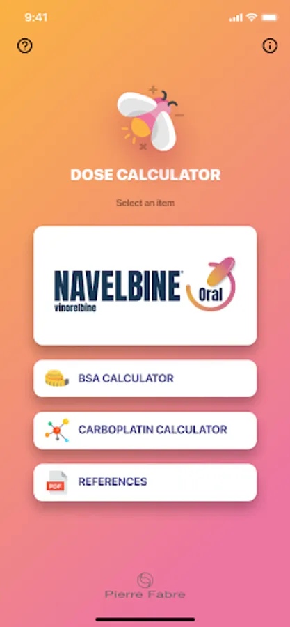 This application is a dose calculator for an oral chemotherapy product to facilitate the work of physicians. It includes the Body Surface Area (BSA) calculation, Carboplatin calculator, a brief product information and literature.
