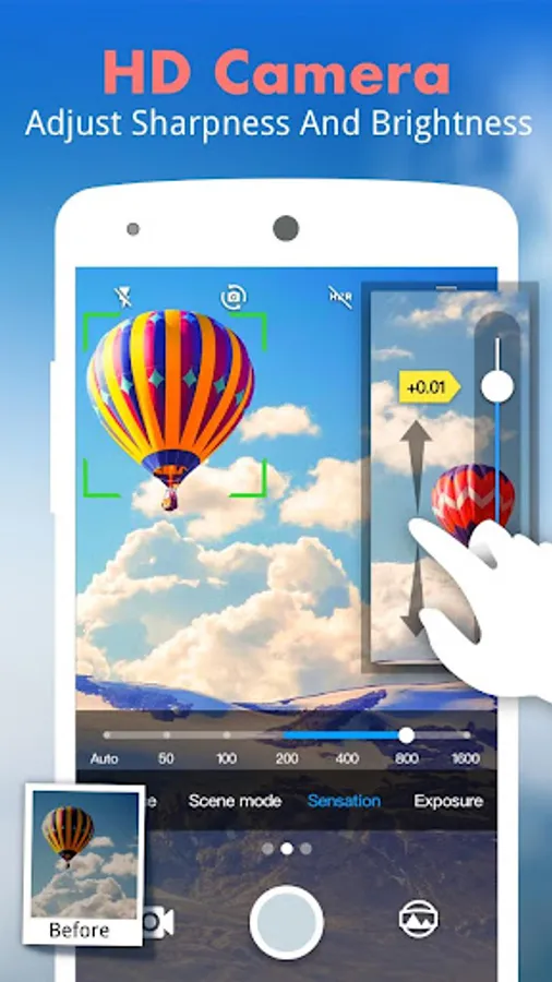 * Panorama - Shoot and produce a panoramic photo, taken immersive 360-degree panorama, panorama mode requires the use of a gyro sensor Magical effects with different styles.