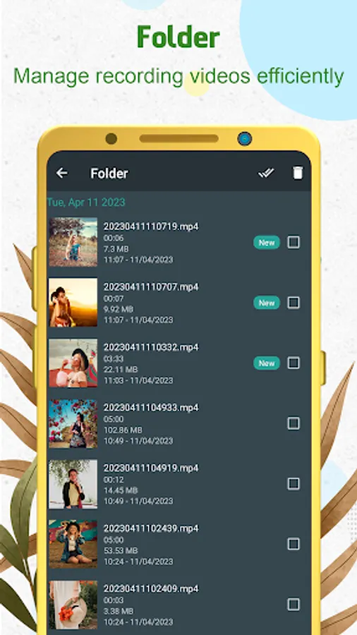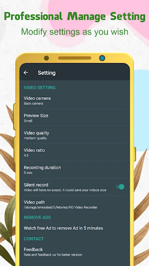 - Easy to config duration, camera, and video quality.