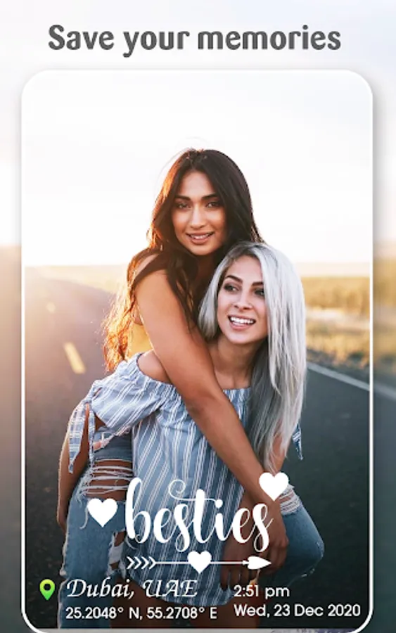 Camera time stamp: GPS timestamp camera easily add your location on camera gallery photos with current time and date with a custom address. Recall memories by adding date and time on image including Longitude and Latitude.in a few seconds this showing time will add personalized time and date. Choose any format in the way you want to it photos. After capturing the photo, you can have very information as a template on your clicked photos as auto stamp camera, once you clicked the camera. Support compass logo to display on camera for directions North, South East, and West.
