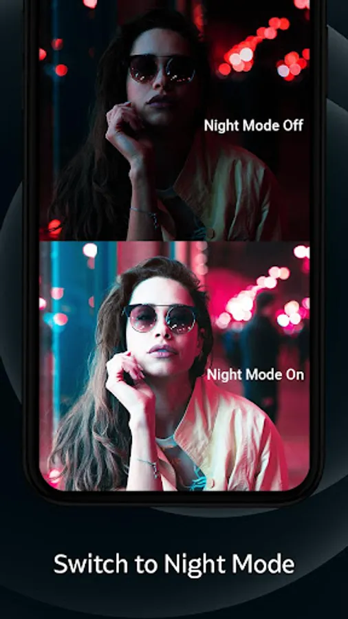 Easy video recording/shooting. You can also click photos while taking a video using a Pro Camera. Selfie Camera also has live mode & night mode camera effects