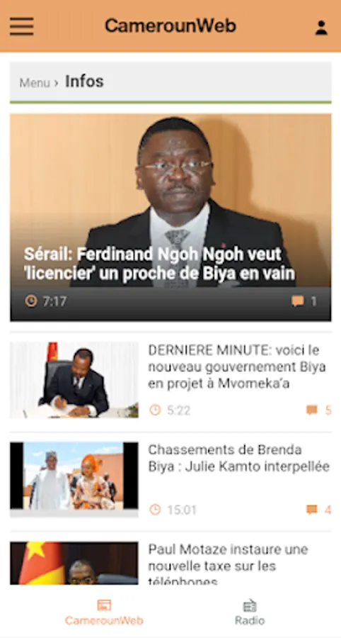 Follow the latest news and the front pages of Cameroonian newspapers in real time thanks to our selection of articles. Listen to broadcasts of major live events and local radio broadcasts. This application offers you free content in real time in a simple and user-friendly way for all your devices. CameroonWeb is the leader of online information in Cameroon with more than 120 articles per day.