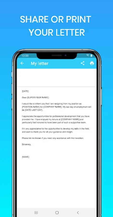 - You will have an example of the resignation letter format, and two options: copy, to copy the content of the job resignation letter and paste it into a document/mail/etc; and the PDF option, to be able to automatically generate a document with a .pdf extension with the content of the job resignation letter, to send it directly to the company where you want to leave your job.