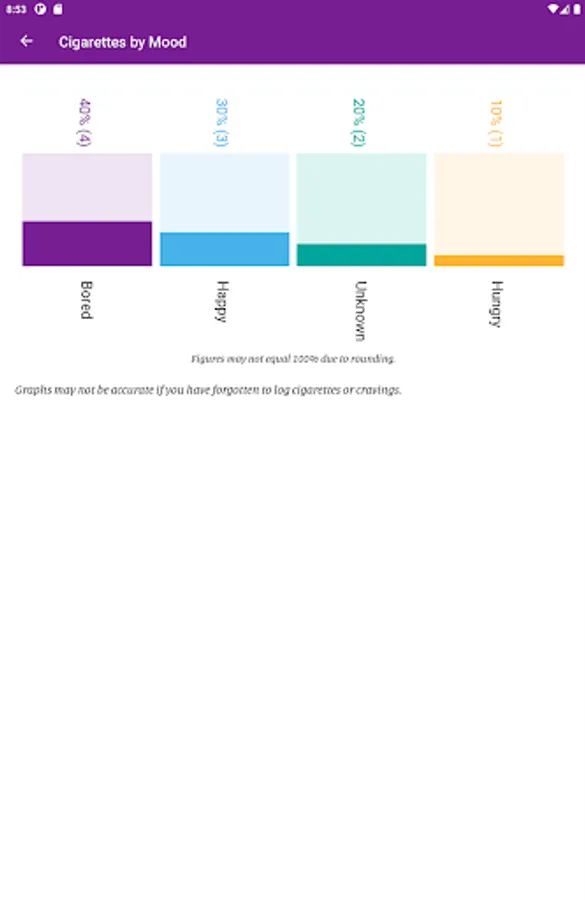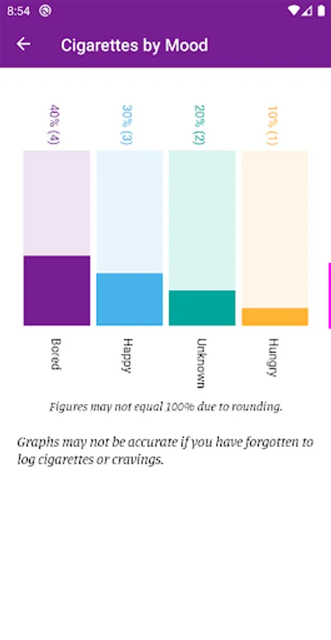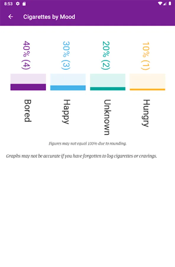 • Set up optional alerts to receive facts about smoking, inspiring quotes, reminders to log smoking, etc.