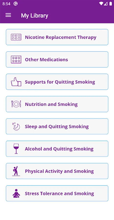 • Learn more about nicotine replacement therapy, nutrition facts, physical activity and other smoking-related behaviours