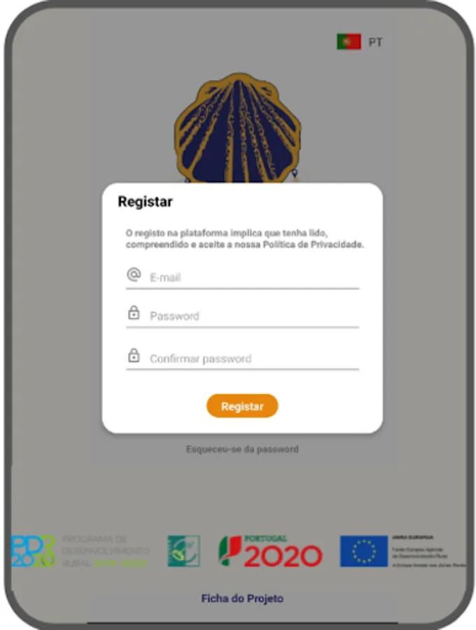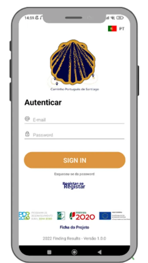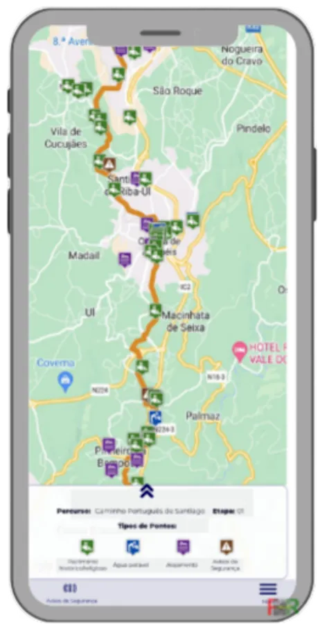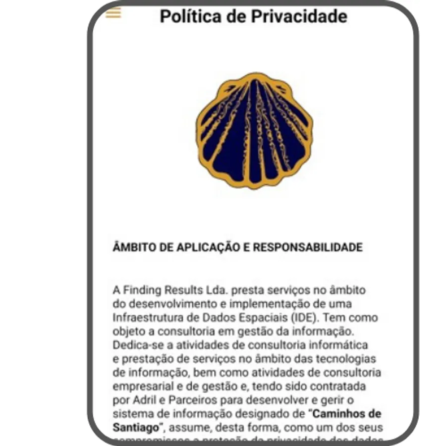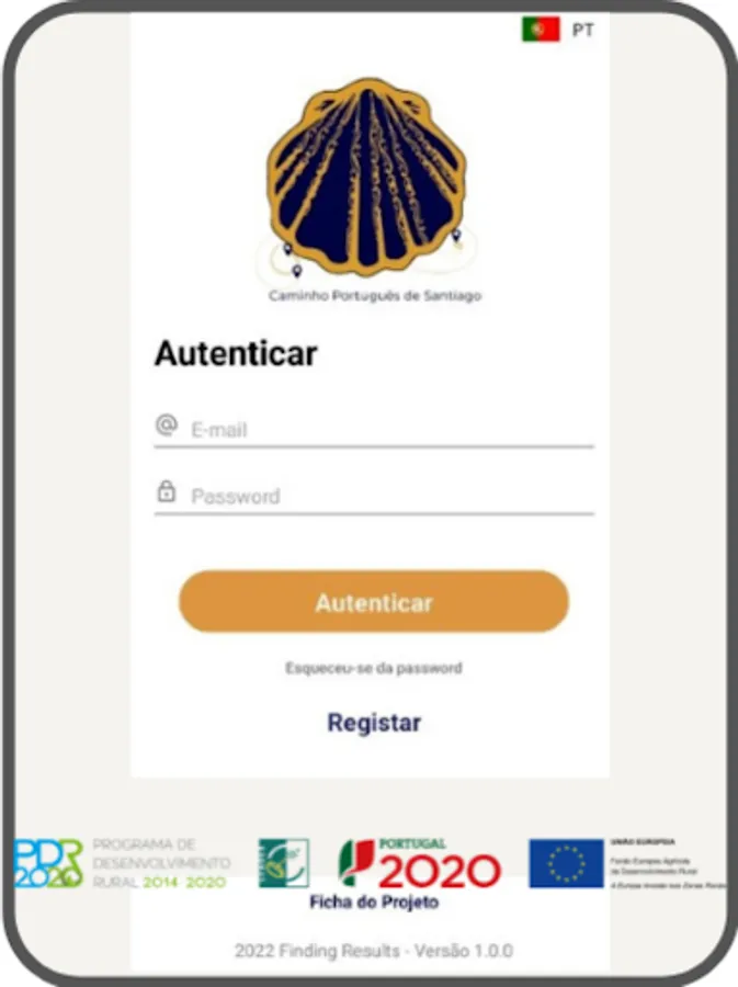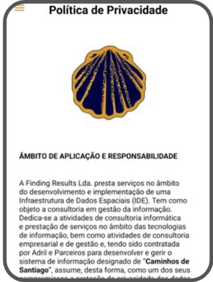 The application provides information about the different stages of the Portuguese route, namely images, distance, difficulty, route, among others: