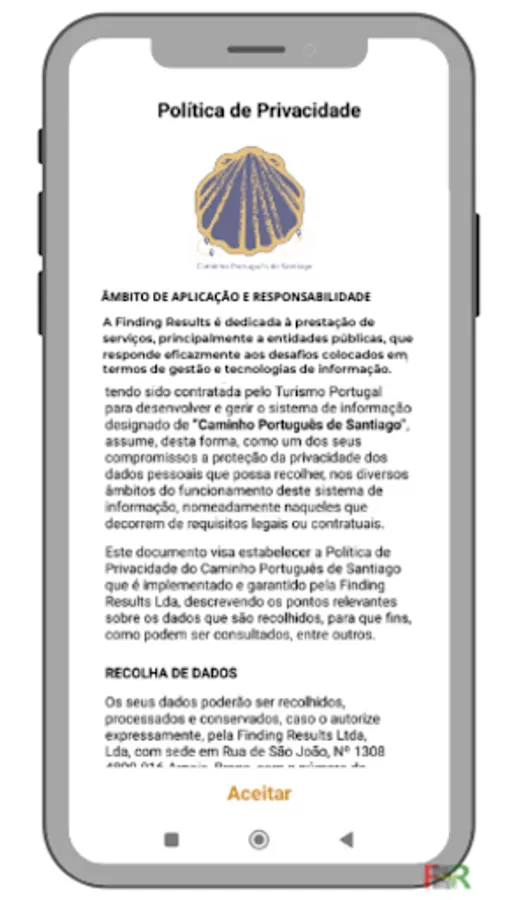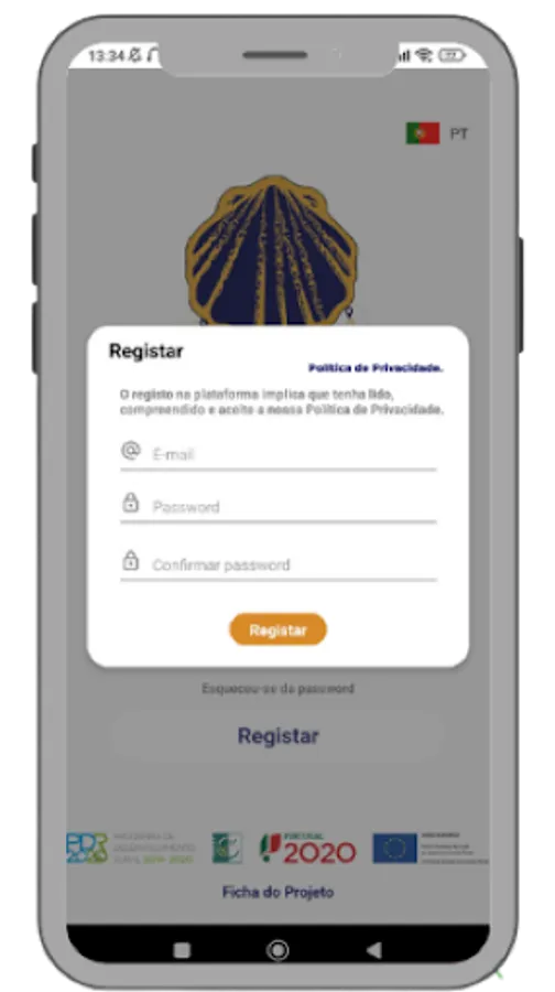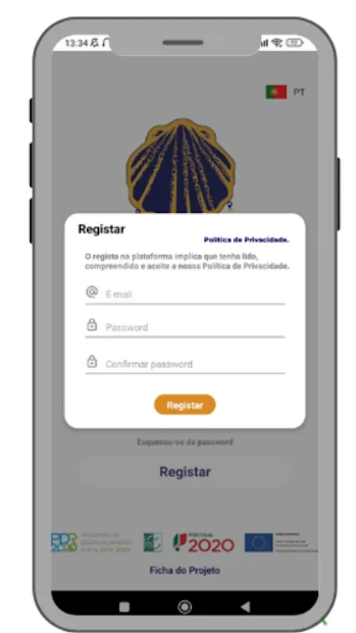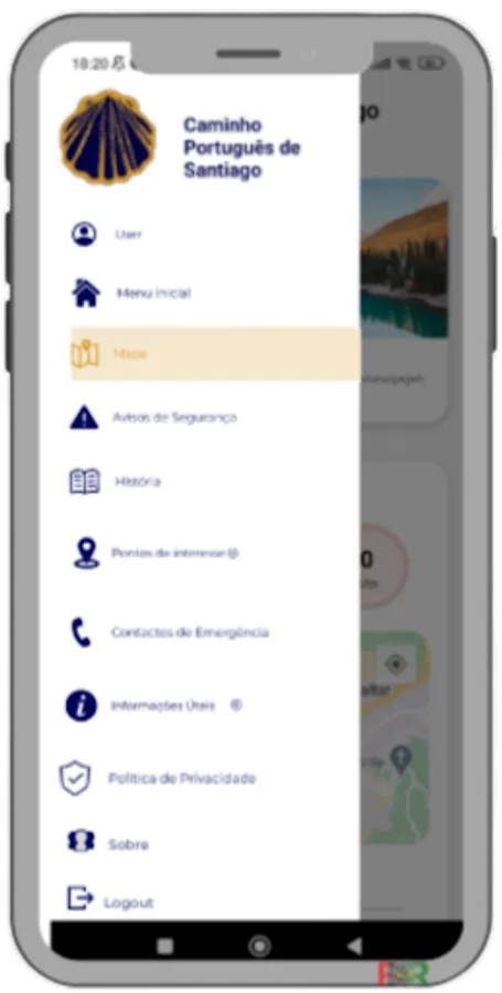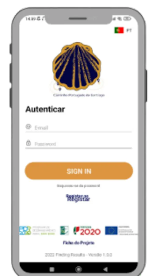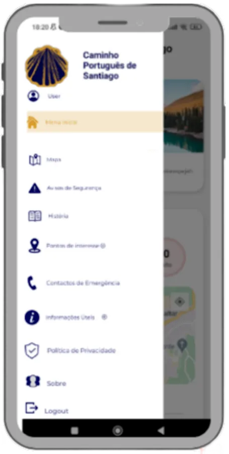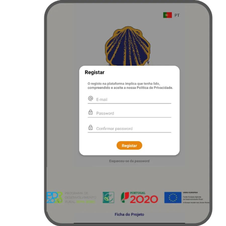 The application provides information about the different stages of the Portuguese route, namely images, distance, difficulty, route, among others: