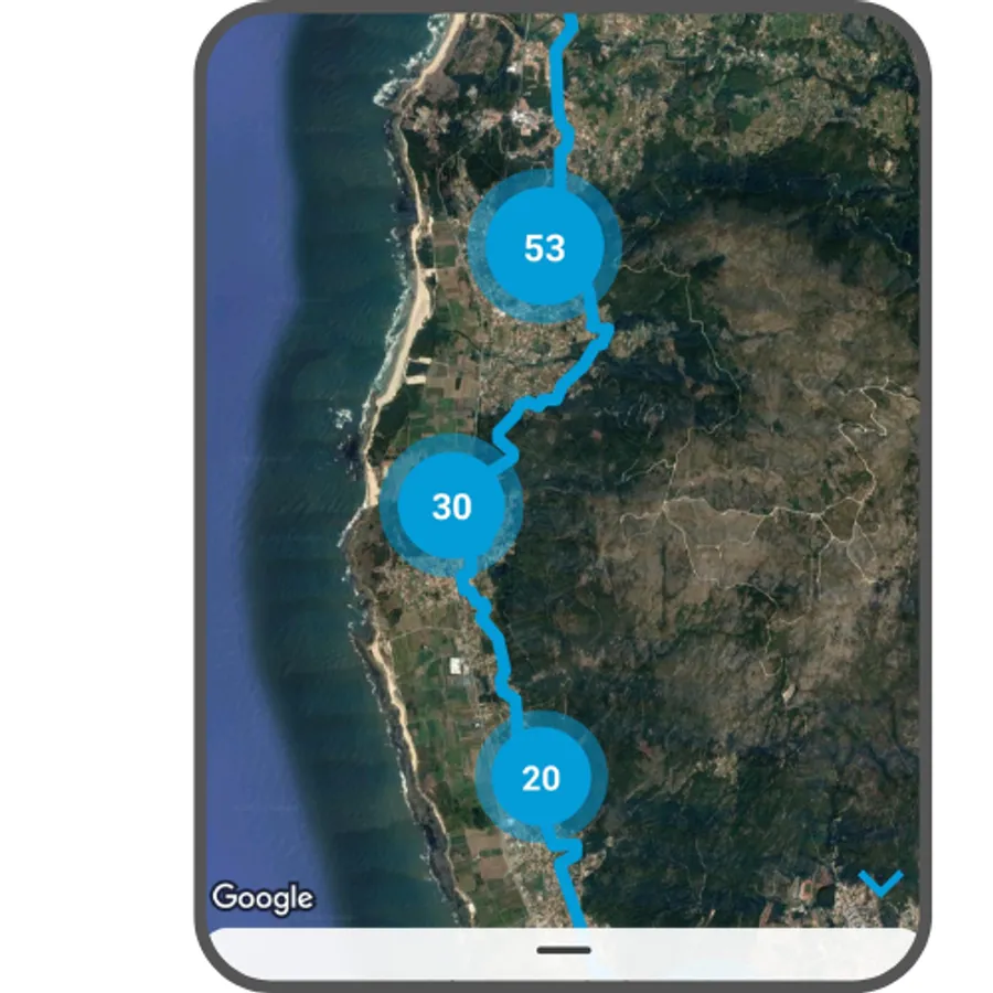 Geographical information about the routes of the Portuguese Way to Santiago.