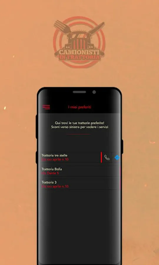 TRUCKERS IN TRATTORIA is the app that allows you to find all the trattorie protagonists of the program on air on DMAX (Canale 52). Through the map you can find out which ones are closest to you, what are their specialties and how to reach them!