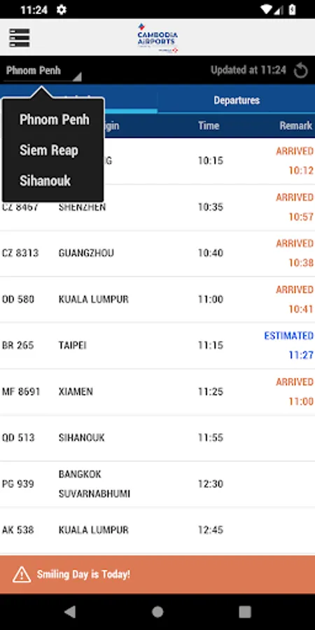 Get the flight information from our airports: Phnom Penh, Siem Reap and Sihanoukville.