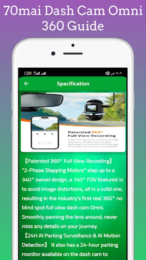 An application 70mai Dash Cam Omni 360 Guide that gives you information