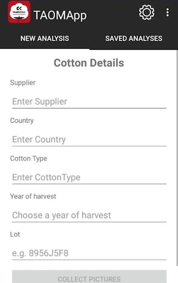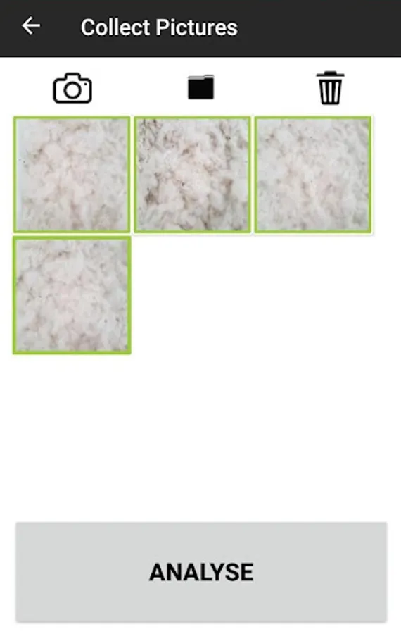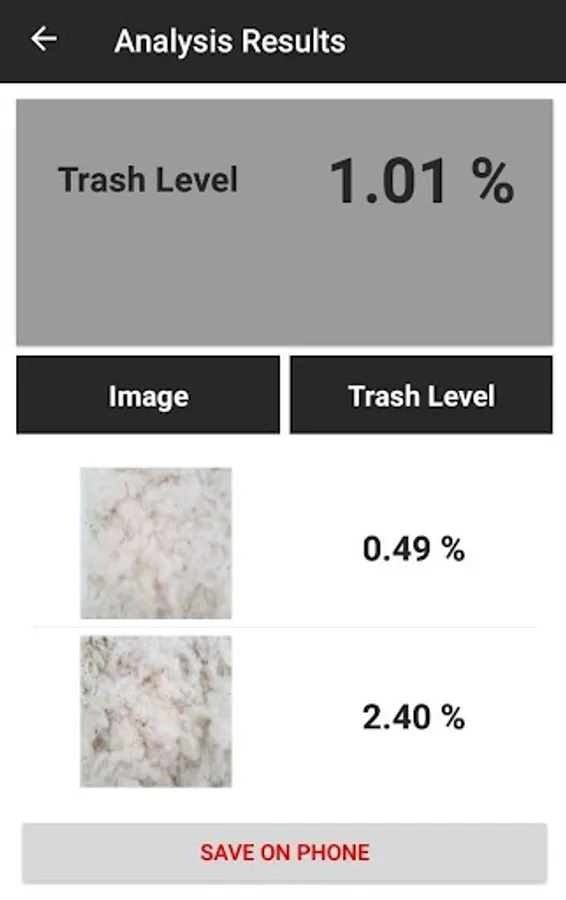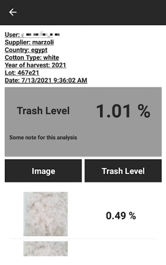 The application uses photos of cotton bales to calculate trash level with AI technology. The application permits to collect a large number of samples, in order to improve the accuracy and have a global situation of the material.