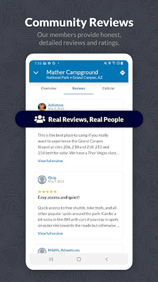 Created by campers for campers, Campendium has tens of thousands of places to camp, from swanky RV parks to free remote destinations, vetted by our team of full-time travelers and reviewed by our 750,000 plus members. Campendium features map overlays for cell coverage as well as public lands so you can always find the perfect campsite. Campendium is free to use and will change the way you find a place to call home for the night.