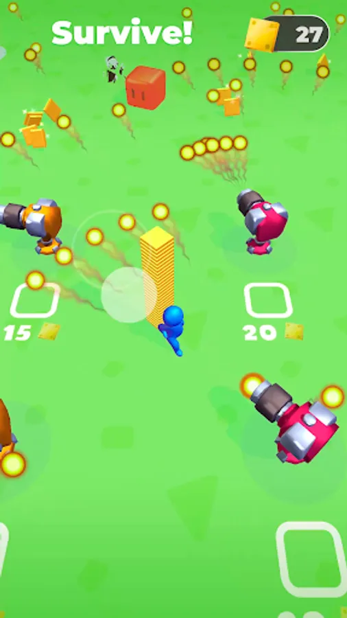 Kill enemies, get resources, use those resources to build turrets to aid you, keep upgrading them and survive as long as you can against an infinite onslaught of enemies!