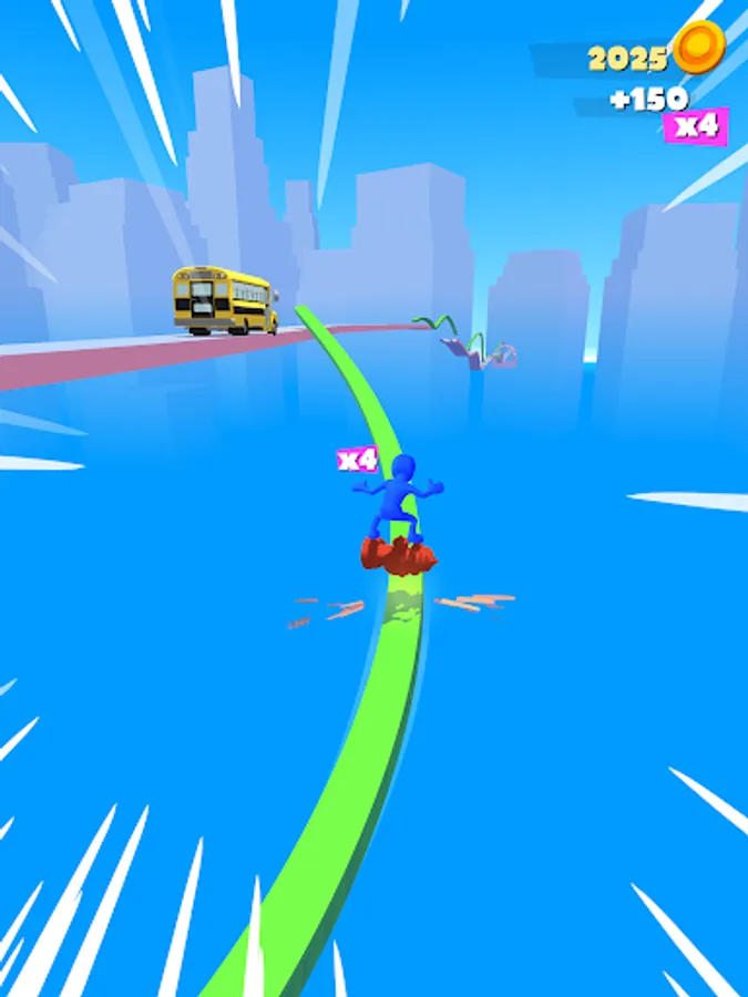 The skate has durability so you can jump out of it to land on other items on the level to use them as skates. Try to reach as far as you can to see different zones and items.