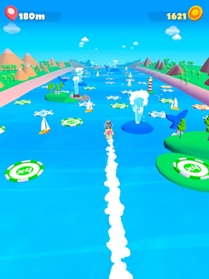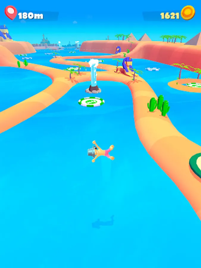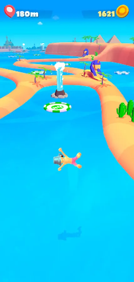 It won't be easy, bounce around avoiding boats, ancient cities, pyramids and find goals to multiply the money you earn through the journey. Use this money to get upgrades, you will reach farther and you will earn even more money!