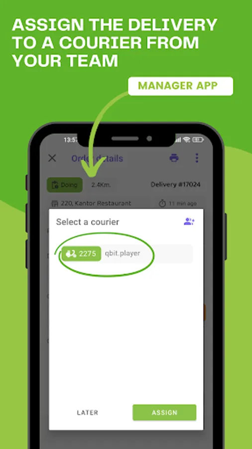 Increase your profits with your own or shared fleet of drivers. Working with drivers is simple: they just need to install the app, log in as drivers, send you their ID for you to add them to your team, and once accepted, they can receive orders and view delivery information.