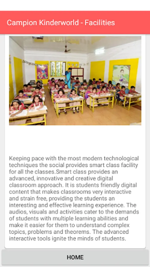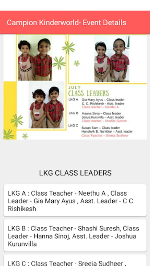 This app will help to improve the collaboration among teachers, parents and management of the Campion Kinderworld , Edappally.