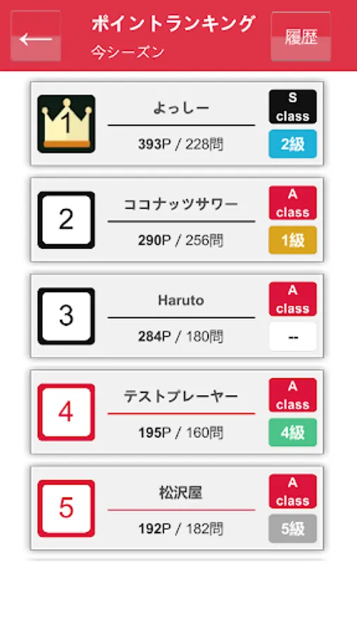 You can freely solve any number of quizzes by difficulty level, and the points earned there will be reflected in the ranking to determine the ranking of the points earned. Let's aim for the "S class" which is ranked first.