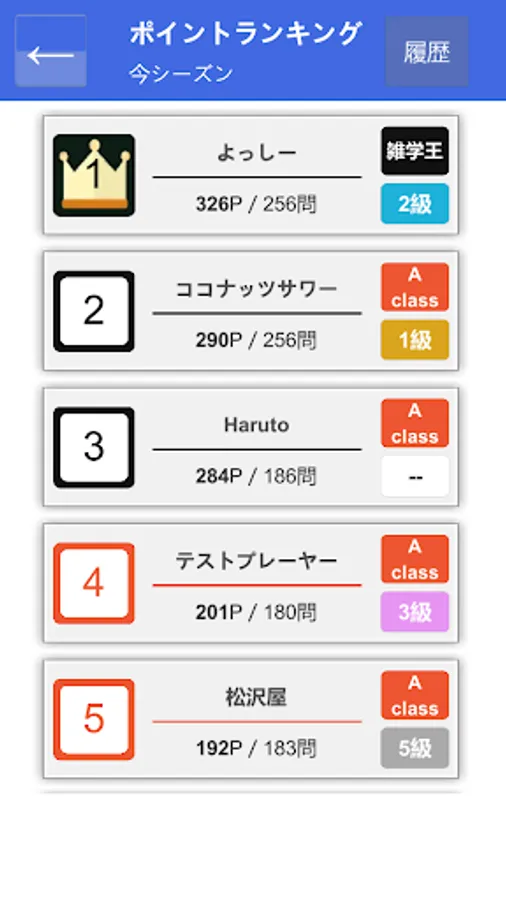 You can freely solve any number of quizzes by difficulty level, and the points earned there will be reflected in the ranking to determine the ranking. Let's aim to be the "Miscellaneous King" who is ranked first.