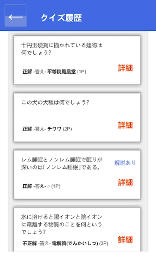 You can create an original 4-choice quiz (3 choices are also possible) from within this app. If you create a quiz, you will also get "medals" that can be used in the app, so we would appreciate it if you could share your knowledge.
