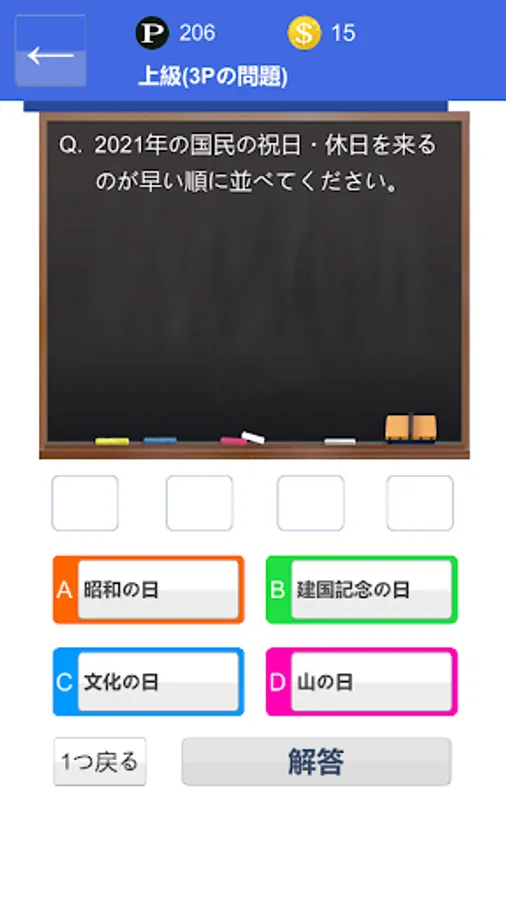 It will be a quiz (trivia quiz) to challenge using medals that can be obtained for free in the app. There are 5 to 1 quizzes, 5th grade is 1 out of 3 questions, 4th grade is 2 out of 5 questions, 3rd grade is 3 out of 7 questions, 2nd grade is 5 out of 7 questions, and 1st grade is 7 questions. If all the questions are correct, you will pass. Let's aim for the first grade.