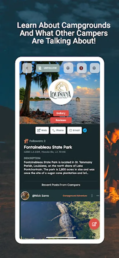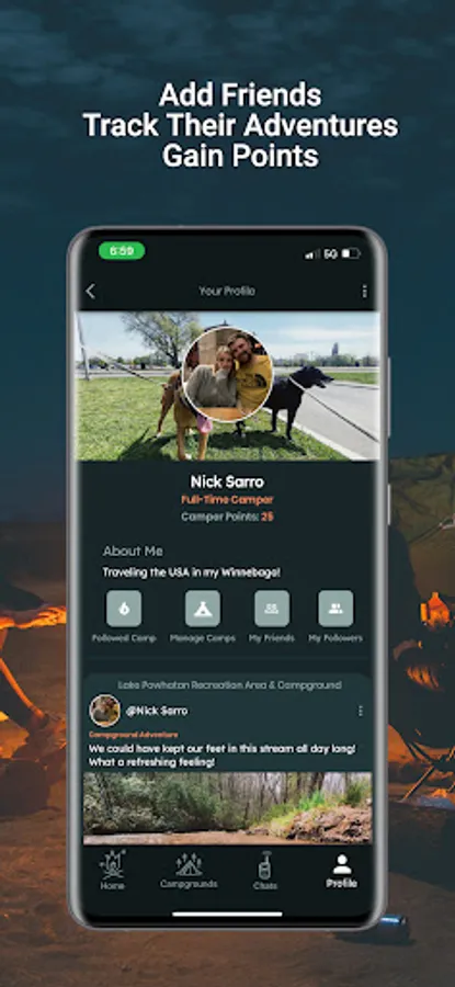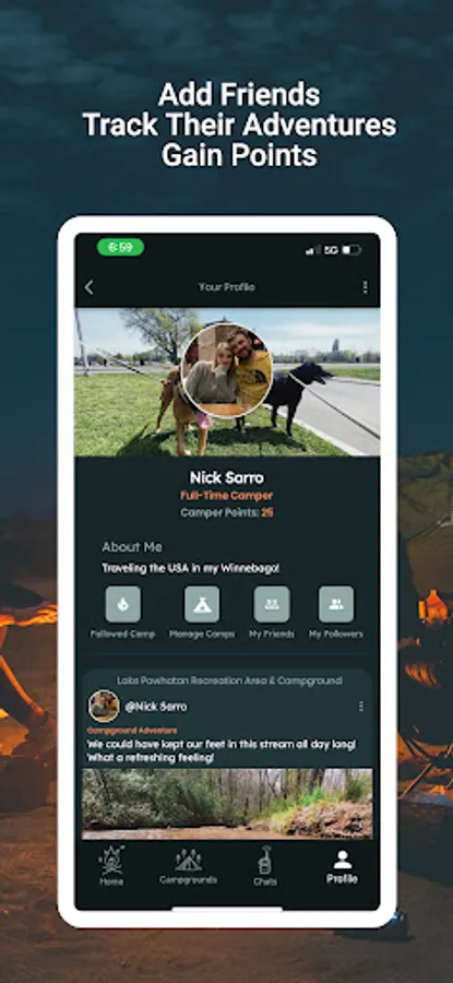 With Campside you’ll be able to connect with other campers at your campground. Create, plan, and attend unlimited recreational activities; fireside chats, hiking, biking, etc. Finally, a platform to share your adventures! Where will you go?