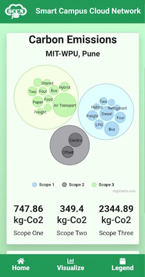 This App Displays Carbon Emission of Dr Vishwanath Karad MIT World Peace University, Pune Campus.