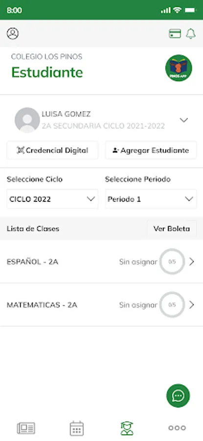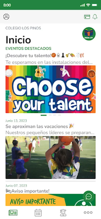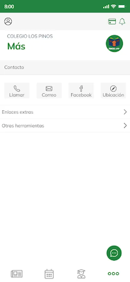 -It has an internal chat so you can communicate with the staff of Colegio Los Pinos.
