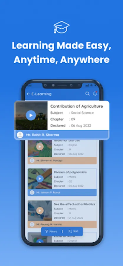 Shree Navyug Schools Mobile App is a smart school management system that offers cutting-edge ERP features for end-to-end operations management like attendance, homework, notice, announcement, gallery, events, timetable, download, feedback, holiday, birthday, or fees payment.