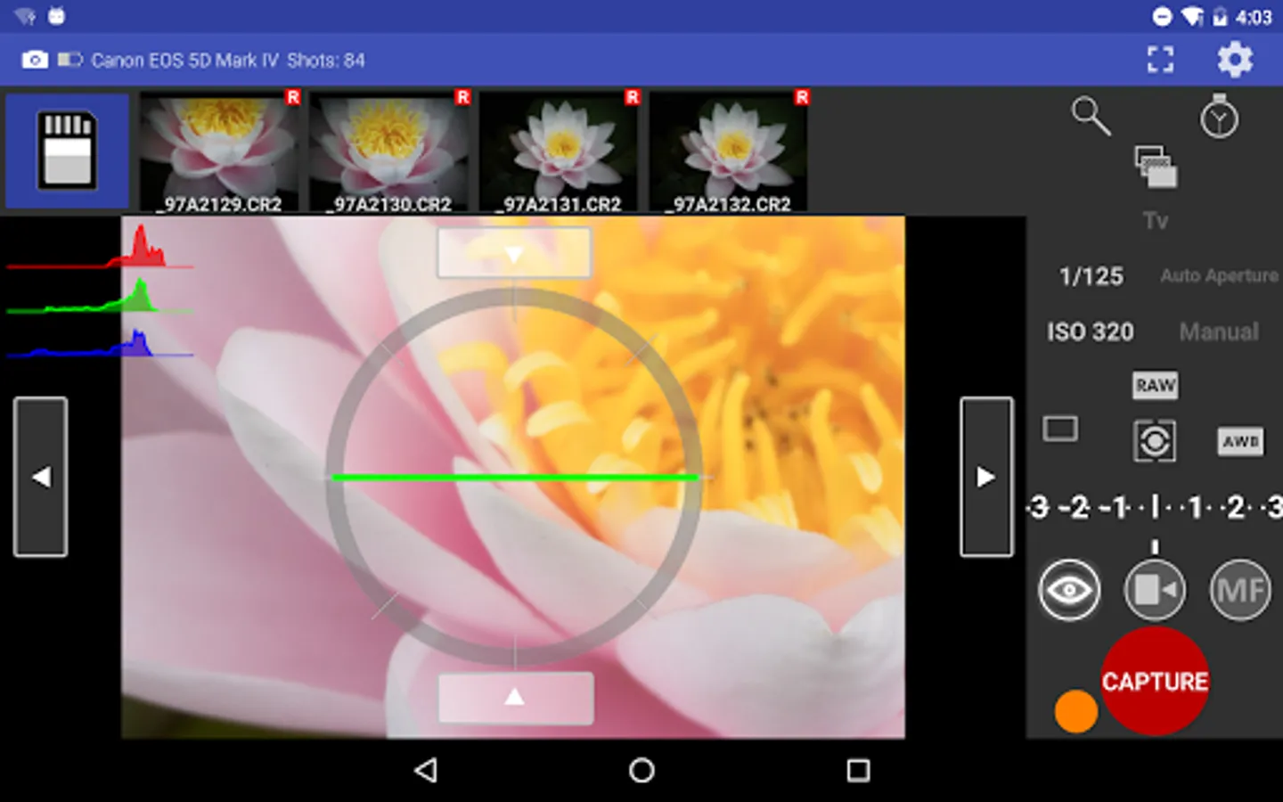 View and set camera parameters (Shutter Speed, Aperture, ISO, White Balance, Focus Mode, Capture Mode, etc.)