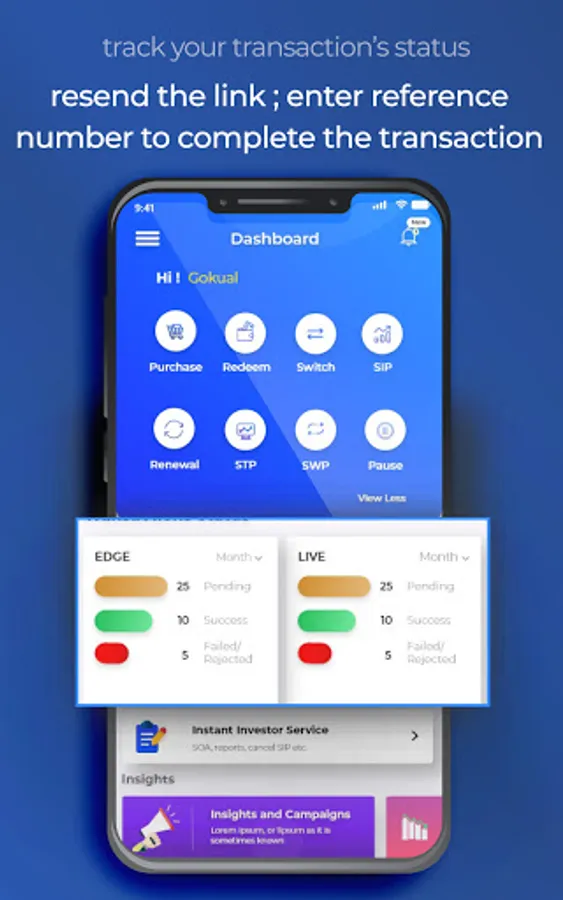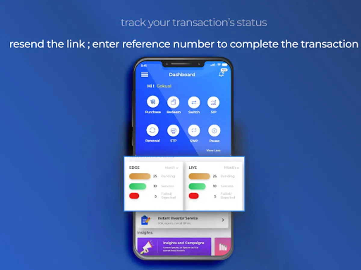 6. Upcoming features- edge360 app will soon launch a variety of additional features on the app- insights and campaigns, change of investor contact details, insta-redemptions, transaction cancellation, bulk transactions and a host of other features. Keep watching this space and keep using edge360 app to take advantage of all these exciting features!