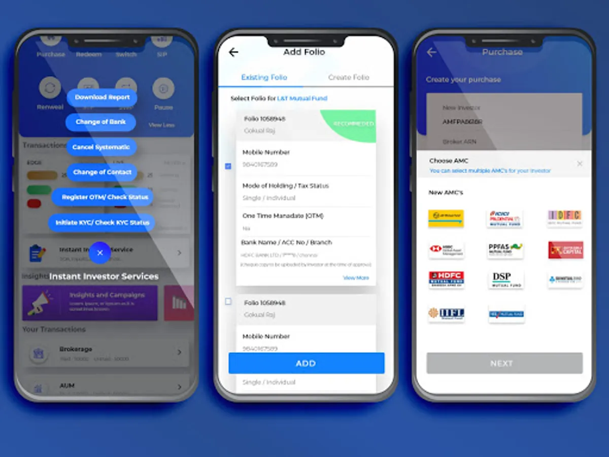 edge360 is a simple to use and intuitive app that allows ARNs and EUINs to register and login for free. edge360 helps you with reconciliation of your brokerage earnings, onboard new investors using Online KYC, manage existing investors and their Investments and portfolio, generate Statement of Account, check transaction status, generate WBRs, initiate Non-Financial Transactions and everything else on behalf of your investors in just a few clicks!