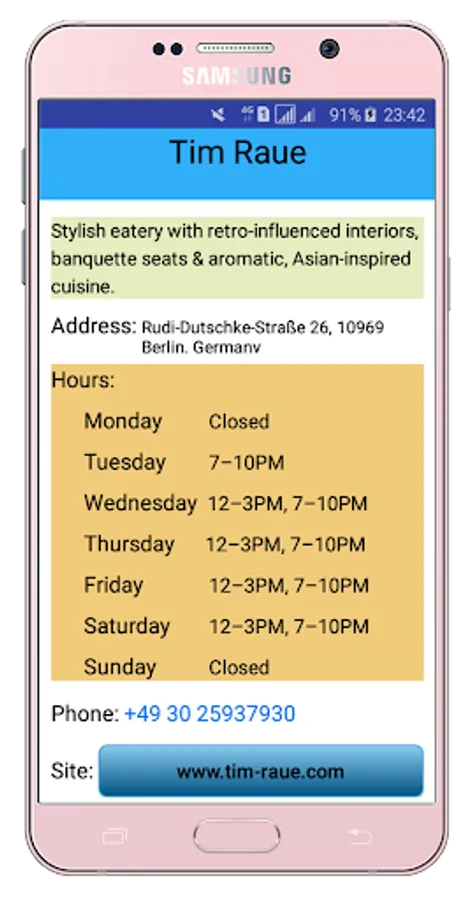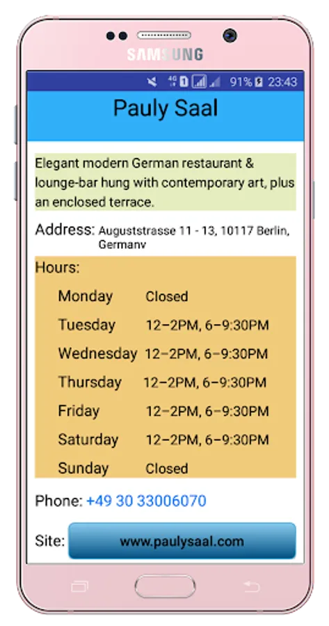 Berlin Restaurants is free and useful application. It will help you to find the best restaurant in Germany easily.