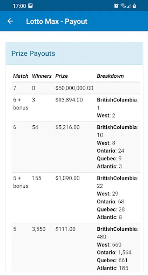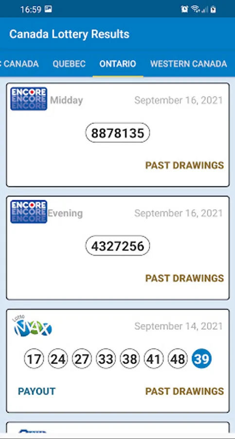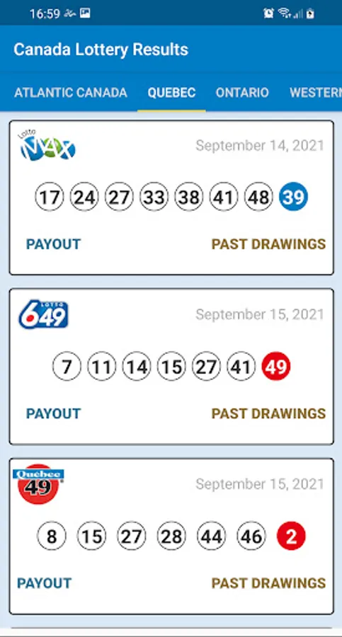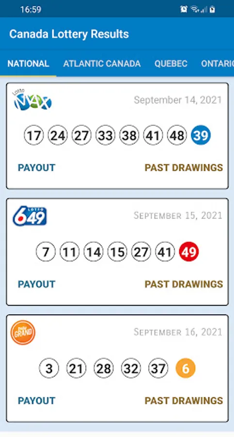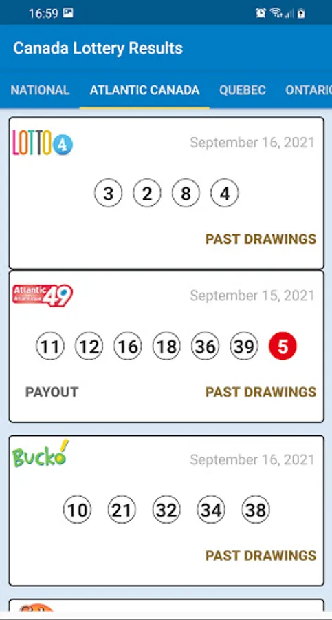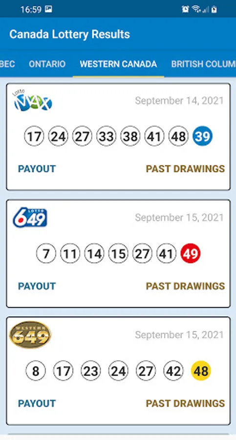 The latest Canada Lottery results are displayed in the Lottery Canada Results app immediately after the draw.