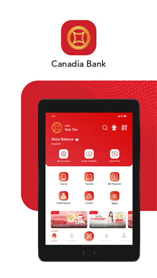 - Transfer money to your own accounts or other accounts in Canadia Bank
