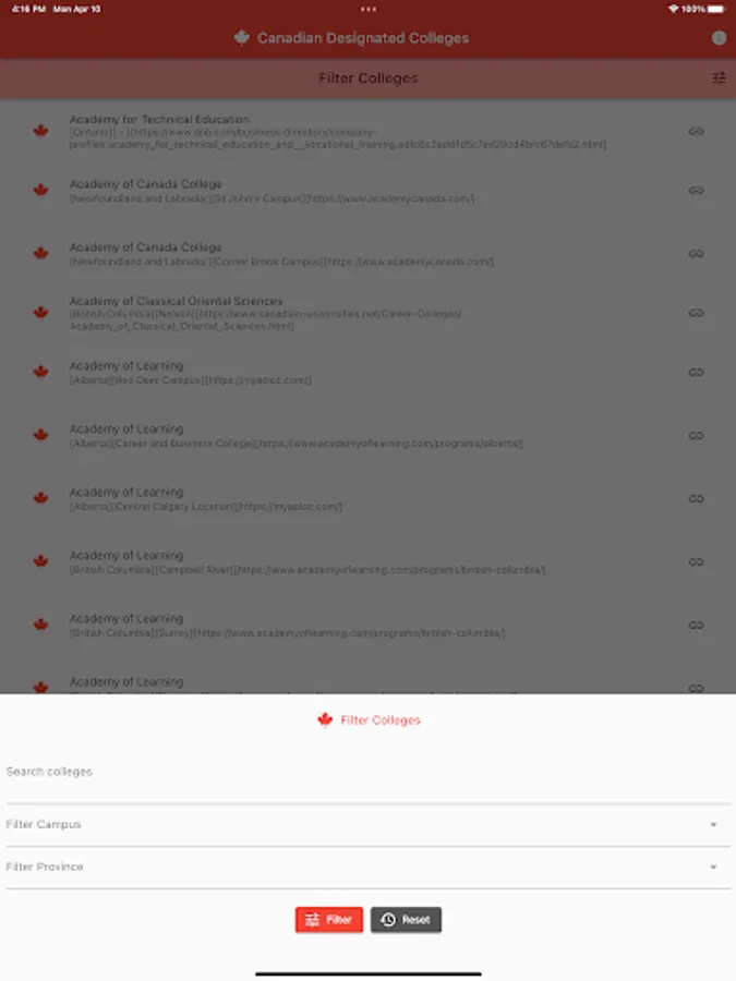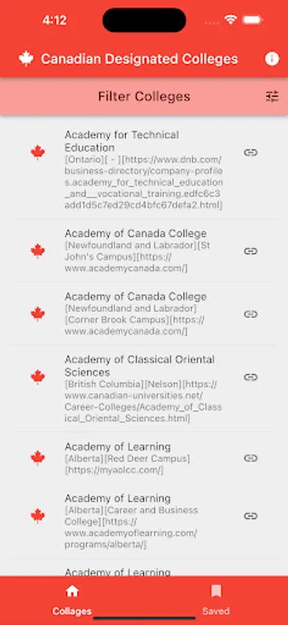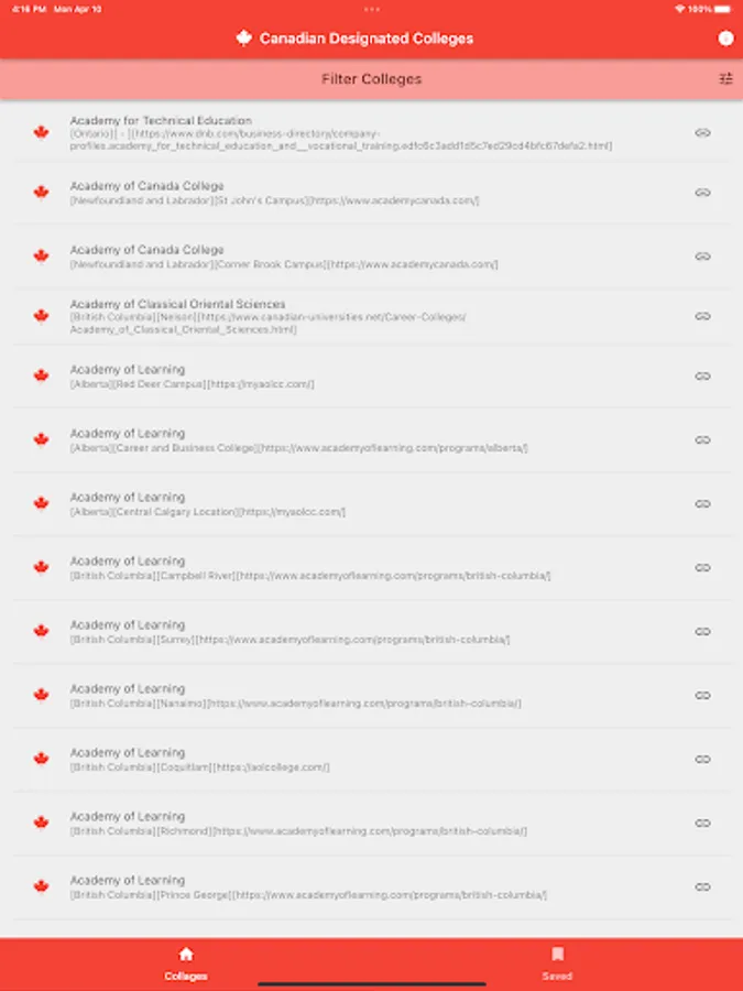 This app allows users to view a list of designated Canadian Colleges along with websites that can be bookmarked from within the app.