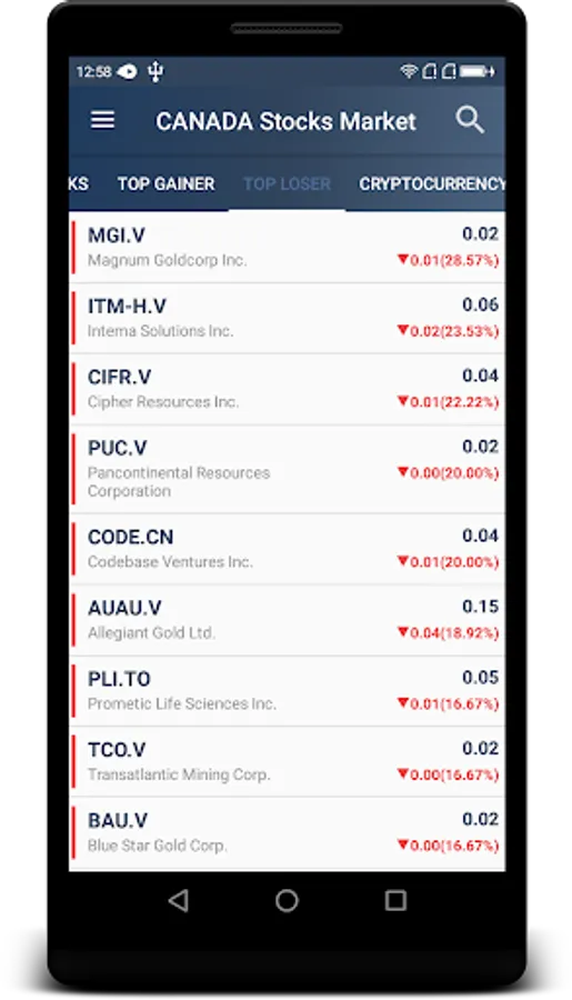 - Extremely light & User-friendly interface and easy-to-use stock app to be compatible with all mobile devices. You Track Canada S&P/TSX,TOP Gainer,Top Loser & Most Active, Crypto Currency, ETF.