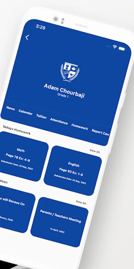 The Homework section allows parents to track what their children have received for homework in the effort of assisting and monitoring the content and the attempt of completing it by the due date.