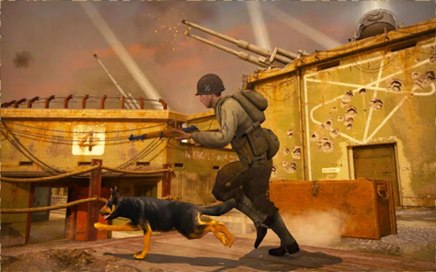 Canadian Rig has designed new strategy, new missions, new best offline shooting games 2023, new command and new troops with heavy armed units. Call of Glory: sniper 3d gun shooter game offline 2023 TPS Game present a brand ww2 army commando survival battlegrounds offline. In this one of the best 3d games 2023 new you’re going to fight a war as a secret mission with your specially trained pet (Dog). You've recently played dog games but here the dog will help you as your savior. Lead as battalion command hero into world war front as army commando and one of the best sniper mission games offline 3d 2023. Fight with enemy force as counter attacking force and shot down their posts like a real army commando adventure. Play largest Third Person Shooter new free games 2023 offline of allied invasion and defeat the forces with your spy strategy. In wild dog simulator games 2023 you’ve seen that dog sim only uses for hunting mania or in dog racing game offline 2023. But here in this call of soldier game you will enjoy virtual dog adventure for this secret mission. Your enemy is so clever and wants to win and making a strategy to win this war of victory. As a secret commando liberate your terrain from the enemy platoon sitting behind heavy machine guns like an attack force.