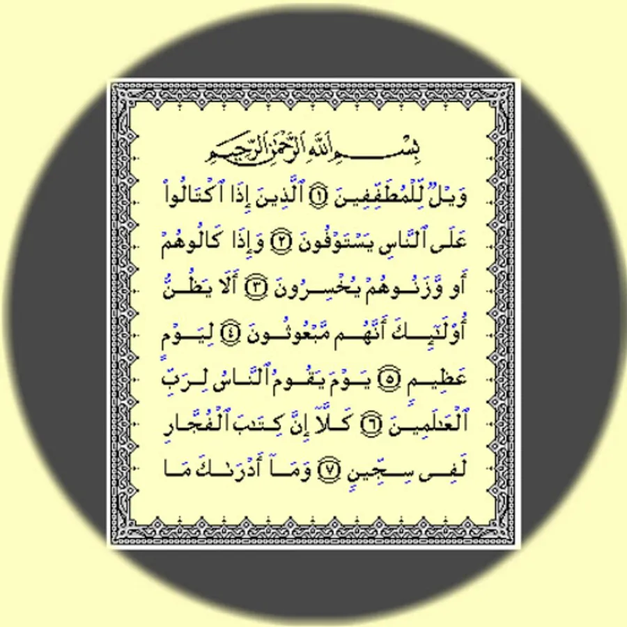 6. 83 Surah Al-Tatfif المطفّفين The cheaters 36 Mecca 86