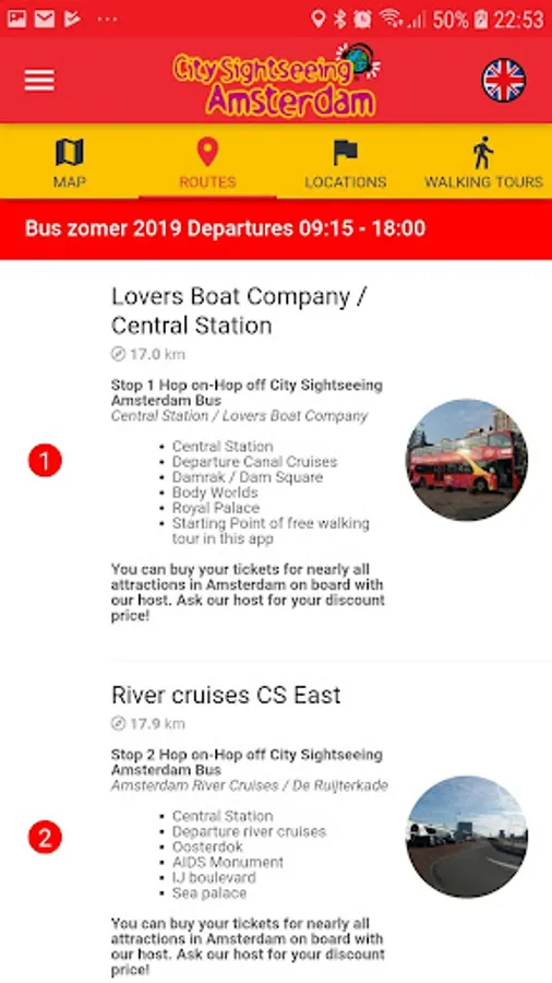 This app is the ultimate guide for your exploration of Amsterdam. See instantly where you can hop-on and see live where our Hop-on Hop-off busses and boats are located. So, you never have to wait longer than needed, you always know when the boat or bus is arriving at your stop.