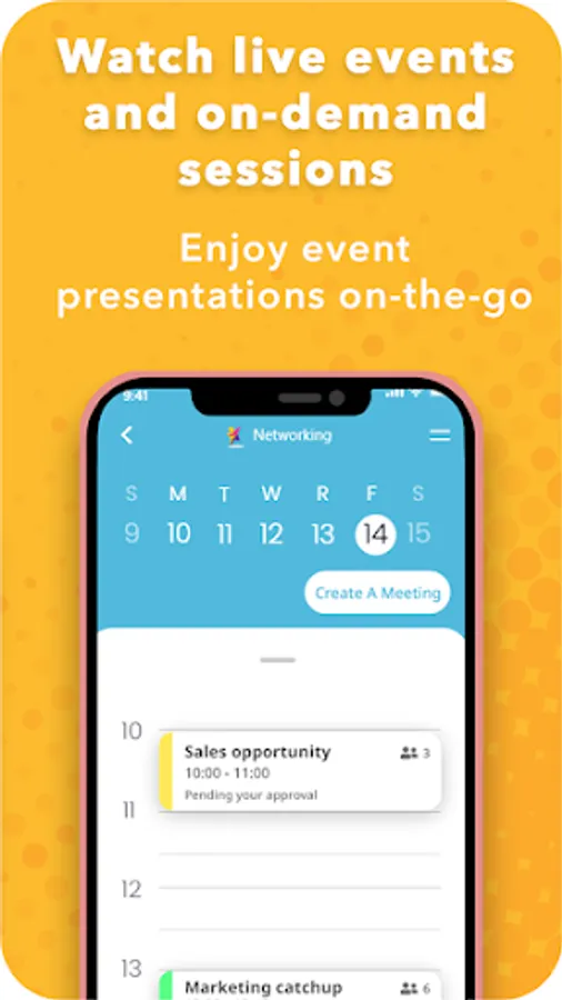 Set-up one-to-one, or group meetings, in advance and store the schedule in “My agenda” as well as in Outlook or Google Calendar. Up to 250 people can join a single meeting. Alternatively, be spontaneous and invite another attendee to simply ‘meet now’. Meetings can be by video or in-person. They are first set in a designated event time zone, with an attendee then able to update the whole event into any time zone of their choosing.